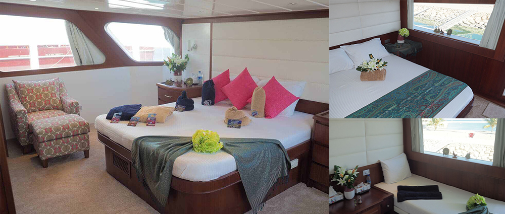 Oman Aggressor (148 piedi) offre sistemazioni di lusso per 22 ospiti. I comandanti e il personale sono dotati di licenza professionale come richiesto dalle leggi del paese in cui lo yacht opera e rispetta le normative dello stato di bandiera e/o gli standard SOLAS (Convenzione internazionale per la sicurezza della vita in mare).